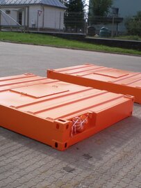 Seiten und Boden: angeschweißt auf die Konstruktion, Materialstärke 3 mm St37