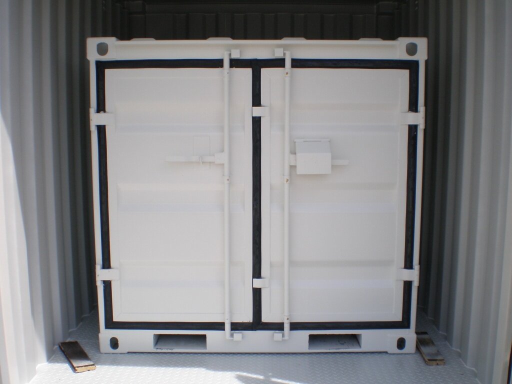 Türen:Doppelflügel, außen angeschlagen, Blechstärke 1,5 mm, 2 Verriegelungsstangen